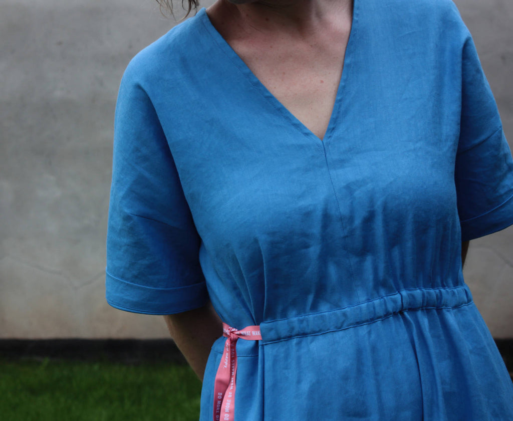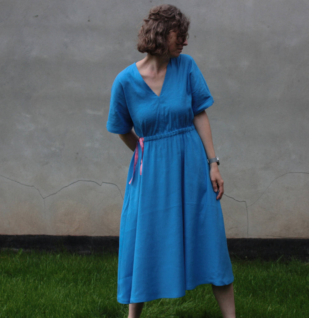 meingewissesetwas hat sich ein minimalistisches und zeitloses Sommerkleid geschneidert! Der Schnitt Nr.68 von trendschnitt matched perfekt zu unserem Panama in der leuchtenden Farbe 'Azura'!