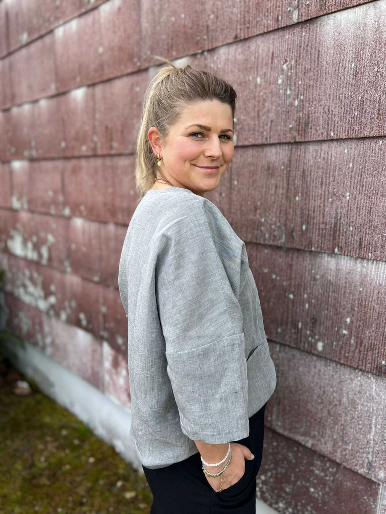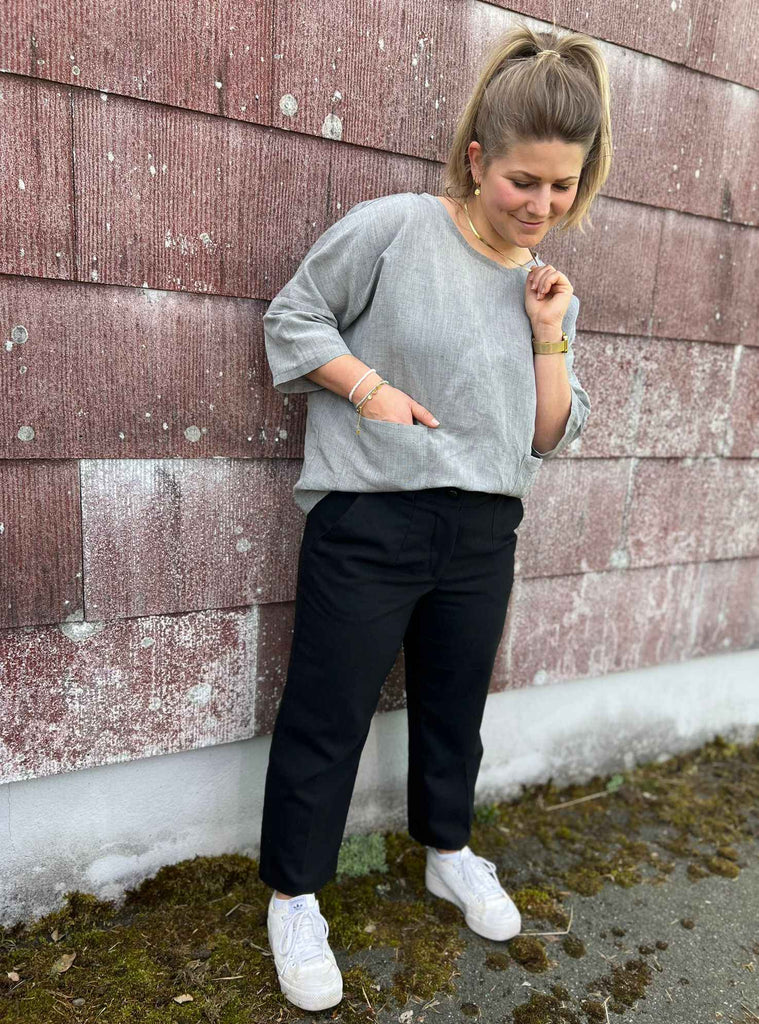 Ines hat sich aus dem Farbton "Silver Cloud" das "Women's Shift Top" von Wiksten geschneidert und freut sich das zeitlose Modepiece aus wertigem Leinenmix im Sommer auszuführen!