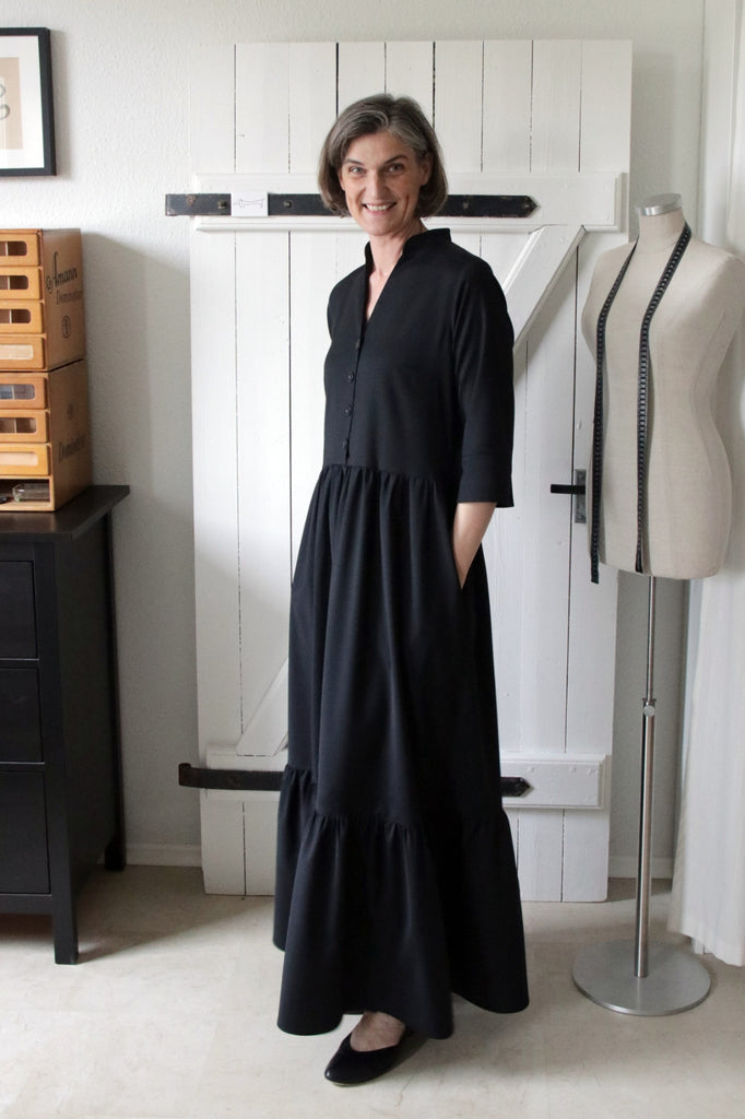 @schneiderherz zauberte aus unserer Summerwool ein luftigleichtes Volantkleid. Die klassischen Details wie der Stehkragen und die Knopfleiste geben dem Kleid einen daily chic der sowohl für die Freizeit als auch in der Arbeit getragen werden kann. Auf unserem Blog erfahrt ihr mehr über ihr edles Geburtstagskleid. Den Schnitt Sombra findet ihr bei lillesol&pelle und den passenden Stoff genau hier!