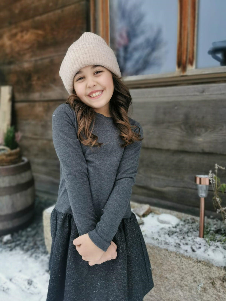 @liiviuundliivi hat FROST GREY in ein zauberhaftes Kleid verwandelt und auch die Minis fühlen sich pudelwohl in dieser hochwertigen Qualität!