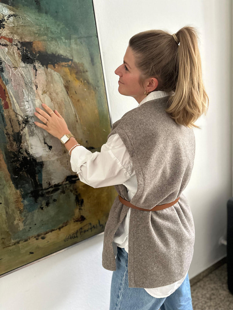 Für ein absolutes Ruckzuck-Projekt hat sich Ines bei unserem Walkjersey in der Farbe LATTE entschieden! Genäht hat sie den Pollunder 'Vilana' von Schnittmuster Berlin.