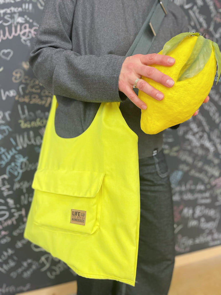 Neben dem absoluten WOW-Effekt bietet dieses langlebige Techno-Gewebe in knallgelb eine robuste Warenoberfläche und ist bestens geeignet für einzigartige coole Taschen und Rucksäcke, wie der XXL Shopper bei dem sich Steffi vom #SHO!pper von @einfach_sho inspirieren ließ!