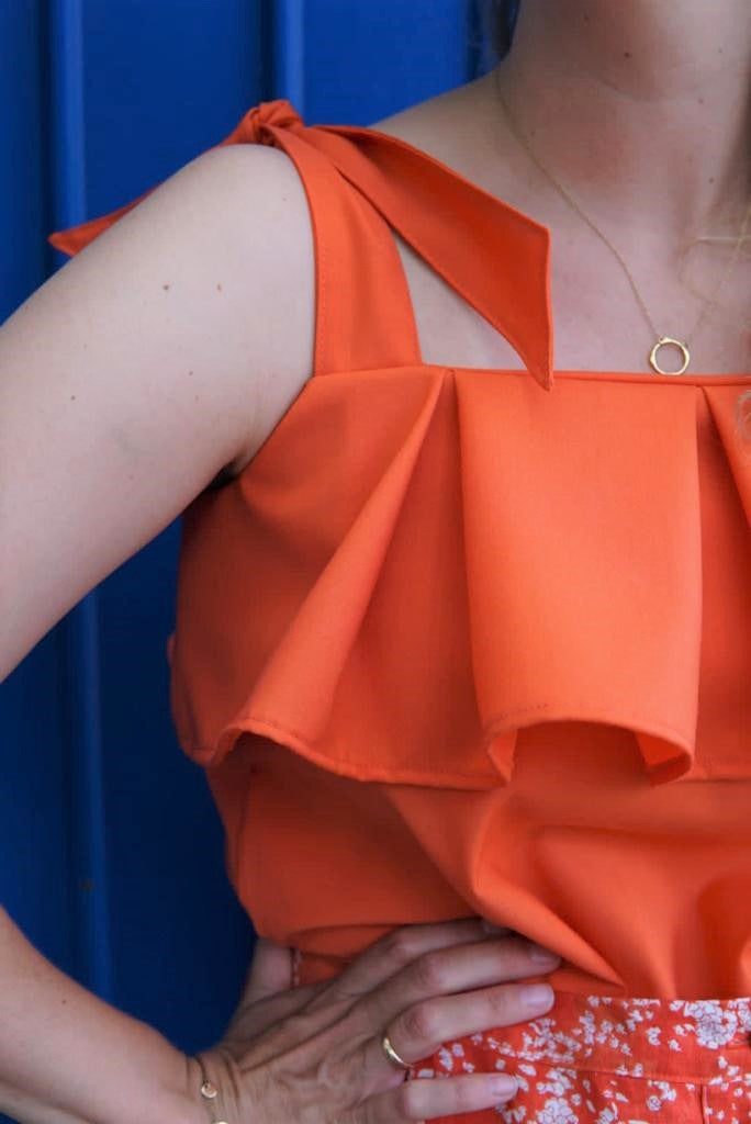 @leniundlivi conjured up a summery tank top. The highlights of the Juno pattern by Apolline Patterns are the knotted straps and the flounce at the neckline, which gives the top a summery, light touch.