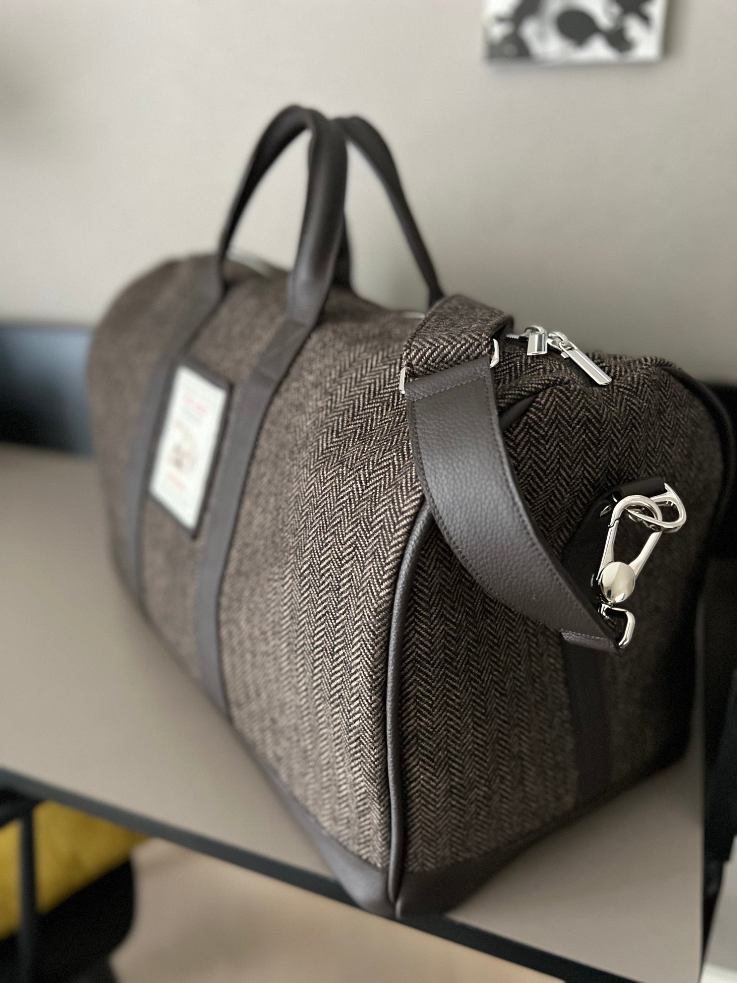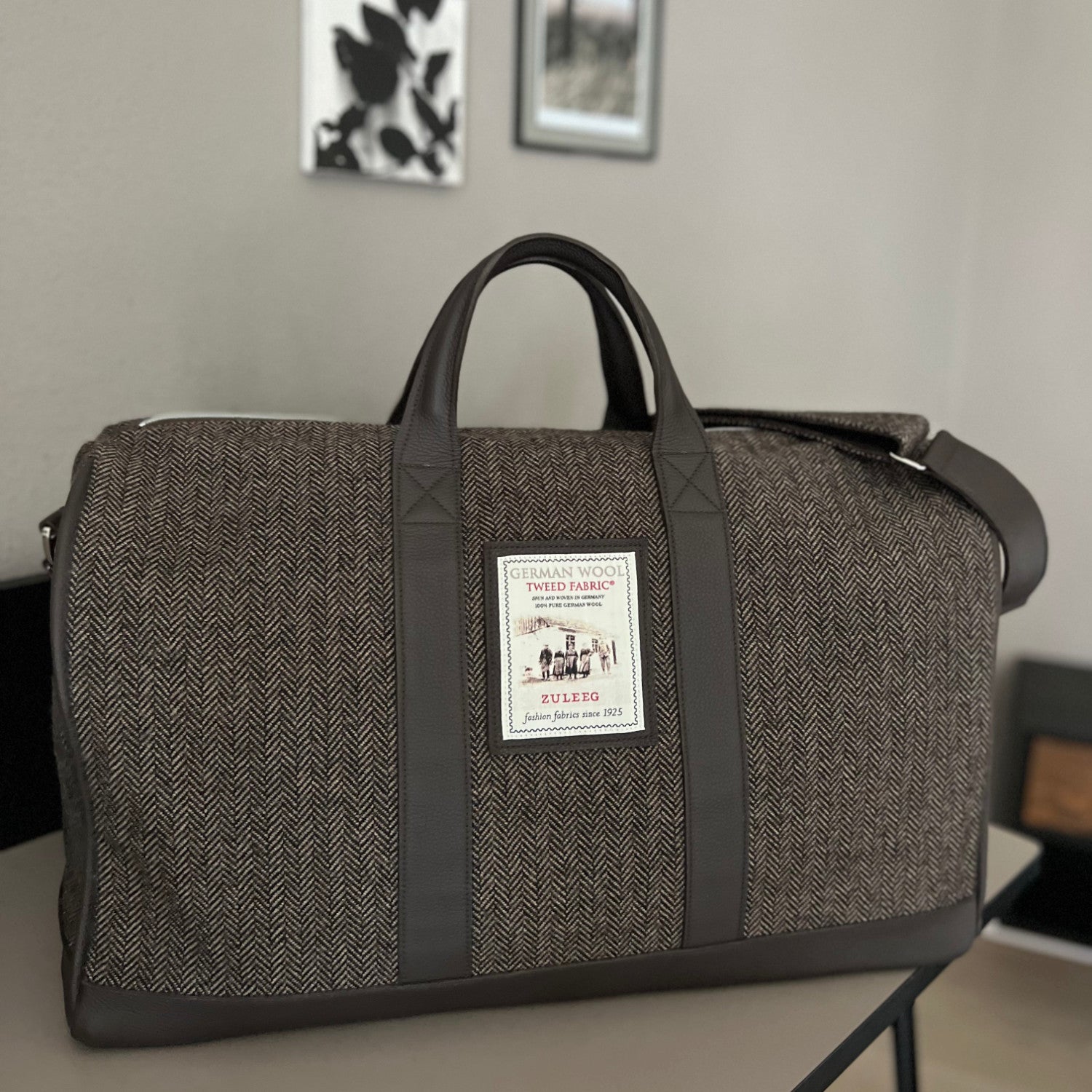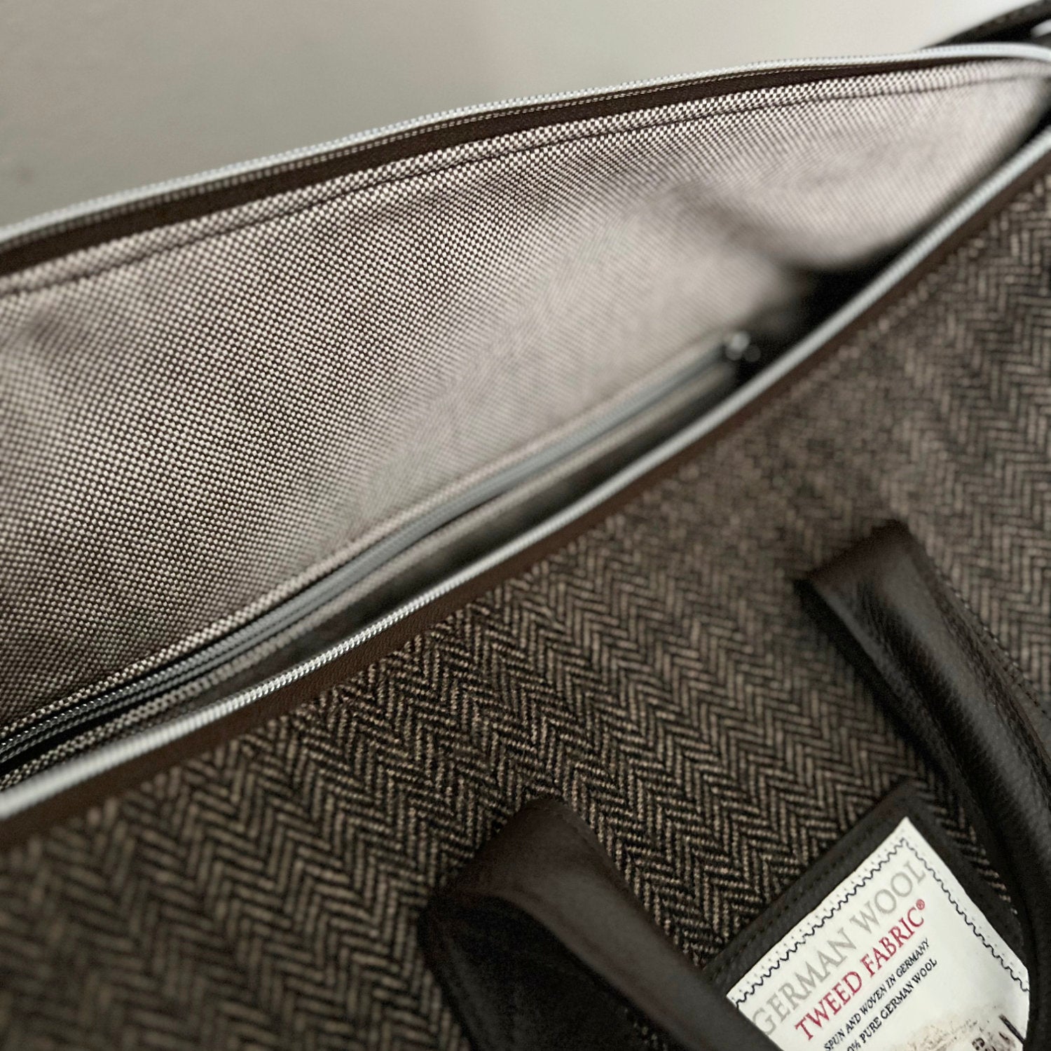 The German Tweedender CORNWALL is crafted from our classic brown/black herringbone and lined with a timeless beige panama-style lining. The genuine leather used is a sophisticated shade of brown.