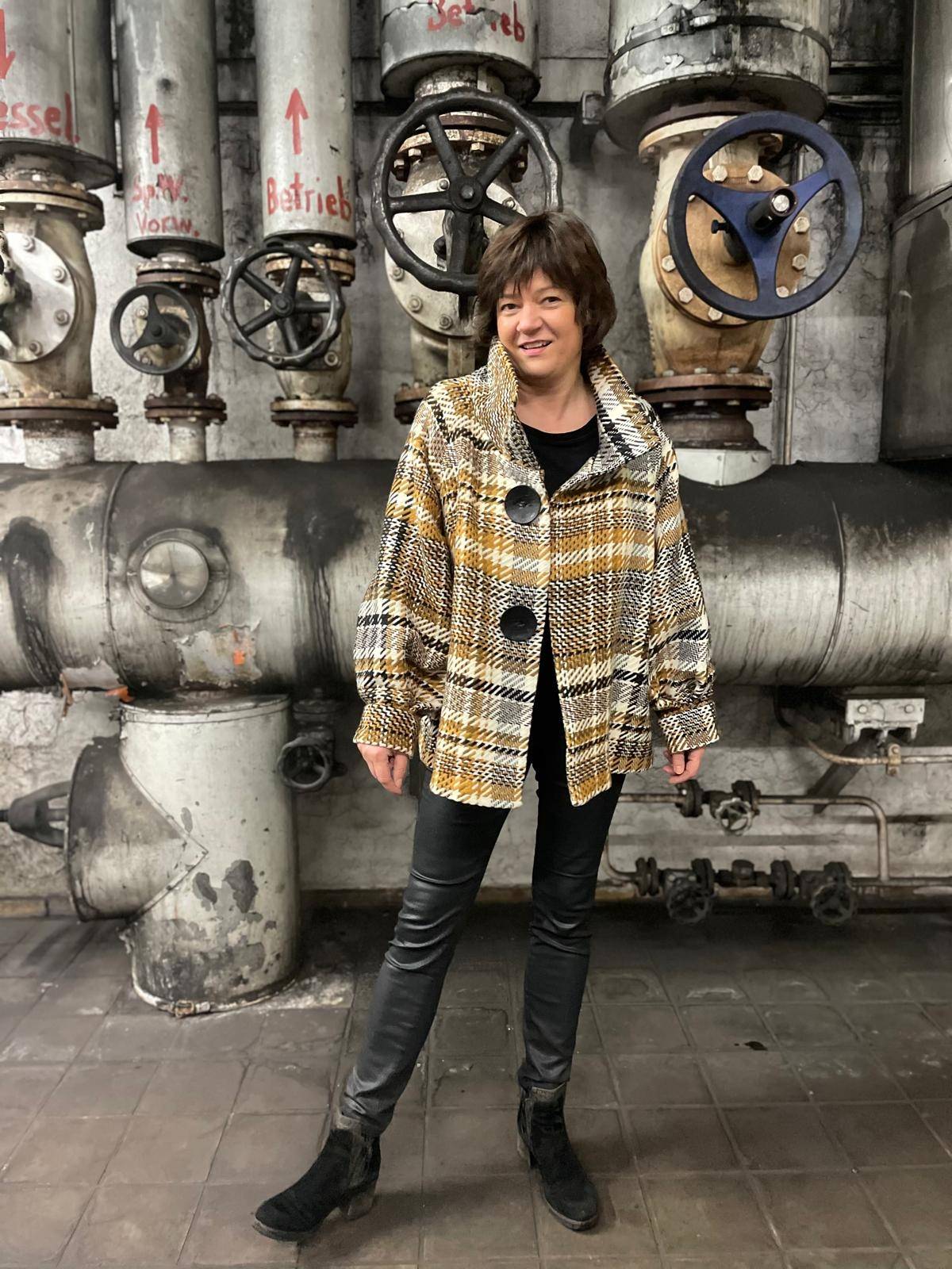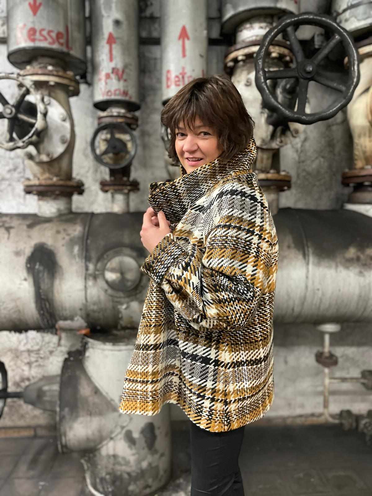 Steffi looks very vogue and stylish with her much admired jacket Vogue V9347Y in the #germantweed check ANIS.
