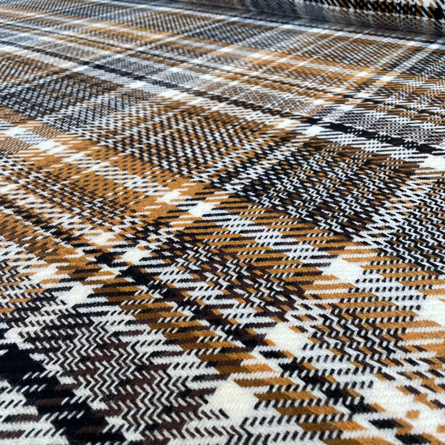 A modern interpretation of the maxi check in black/white/ochre/brown for coats, jackets, vests, capes, ponchos, and accessories! And the best part: you don't have to be a check expert to create this asymmetrical pattern!