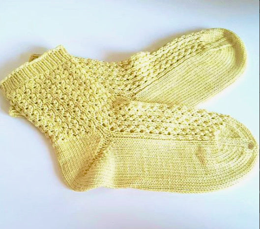 This yarn comes conveniently to your home in a lemony yellow/green .